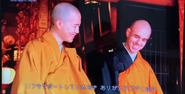 先日、NHKの取材がありました。当院で修行しているケレムさんをメインに、普段のお寺での様子や本堂のお勤めの様子、住職のインタビューなど、朝から夜まで撮影していただきました。 その様子はNHKBSで、Journeys is Japan という30分番組でオンエアされました。イギリス人のカメラマンが高野山を訪れる中で、高野山のあちこちの景色が美しい映像で紹介されています。これは、世界で放映されており、トルコに住むケレムさんのご家族もご覧になったそうです。また、何度も再放送されるとのことですので、ご機会あれば、ぜひ、ご覧ください。